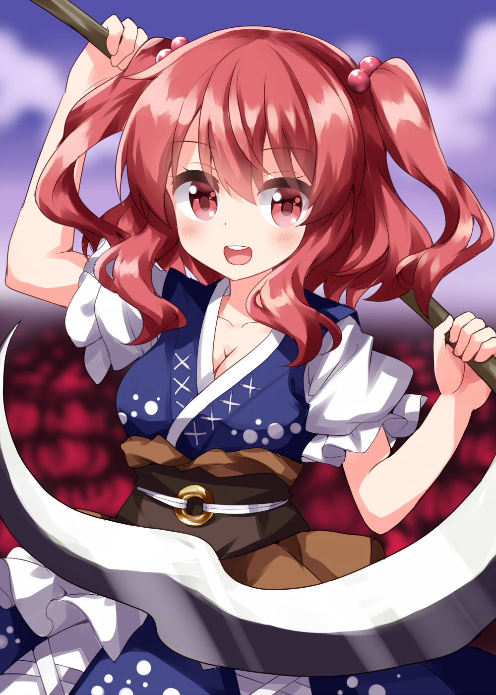 Image Uploader midov, September 10, 2022; 16:29 Tags 1girl black_sash blue_dress blush breasts cleavage coin coin_on_string collarbone dress frilled_sleeves frills hair_between_eyes hair_bobbles hair_ornament highres holding holding_scythe onozuka_komachi open_mouth puffy_short_sleeves puffy_sleeves red_eyes red_hair ruu_(tksymkw) sash scythe short_hair short_sleeves solo touhou twintails Source Unknown Locked No Comments