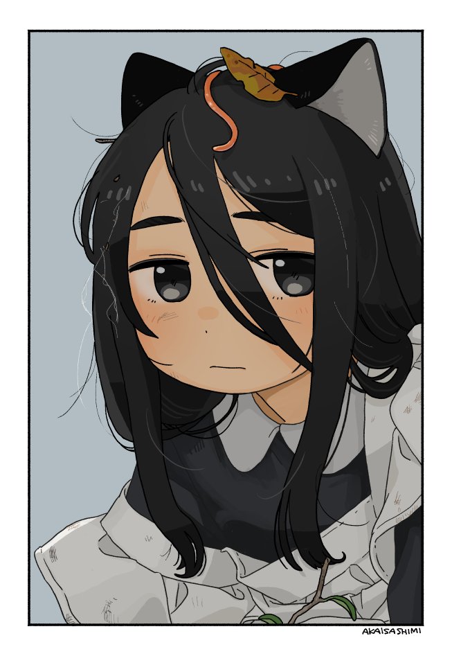 Image Uploader midov, December 29, 2022; 20:52 Tags 1girl akai_sashimi animal_ears black_eyes black_hair border cat_ears expressionless grey_background hair_between_eyes leaf leaf_on_head long_hair original safe signature simple_background solo upper_body white_border worms Source Unknown Locked No Comments